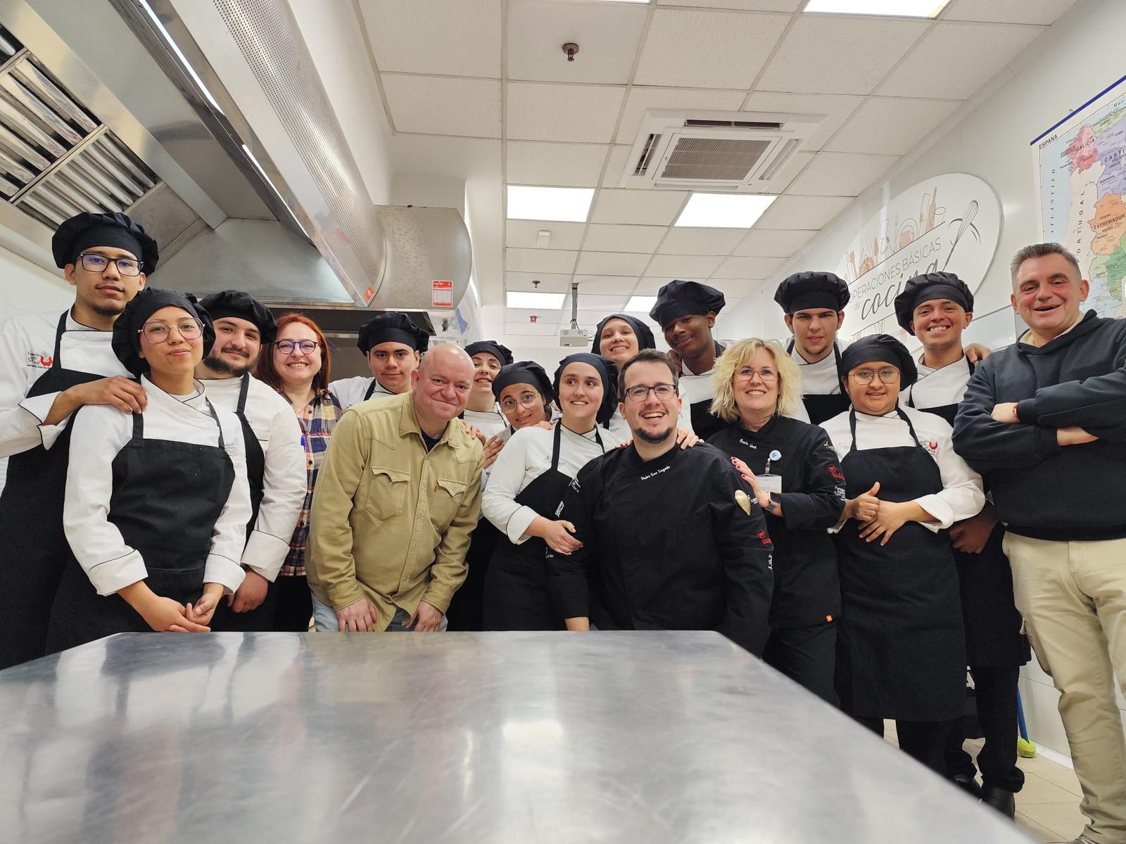 Durante la jornada, los tres profesionales pudieron recorrer las instalaciones de cocina del centro, conocer la metodología de trabajo y observar el desarrollo de las actividades formativas que realizan los alumnos. Los visitantes se mostraron gratamente sorprendidos por la filosofía educativa que impulsa la Fundación, basada en el principio “aprender haciendo, aprender en primera persona”, destacando especialmente el buen nivel de formación y destrezas adquiridas por los alumnos del programa. Asimismo, compartieron su experiencia en el sector hostelero, aportando consejos prácticos sobre organización en cocina, trabajo en equipo y atención al cliente, aspectos fundamentales para el futuro desempeño profesional.